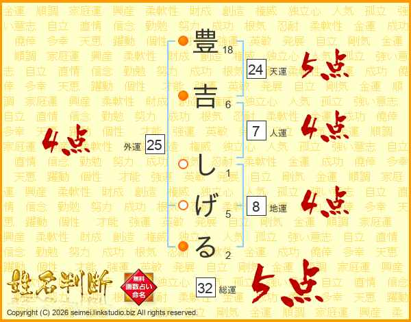 豊吉しげるさんの総運は32画の5点!