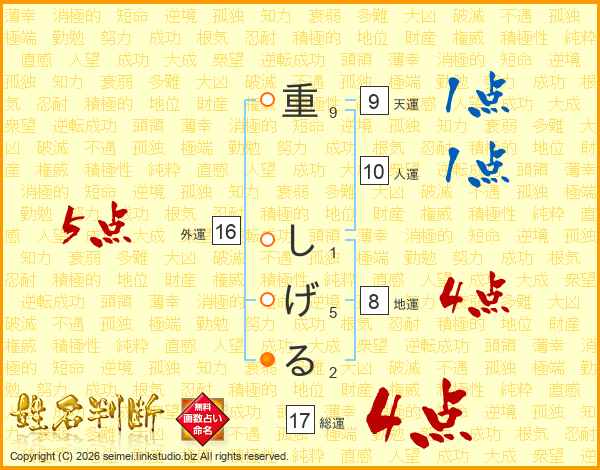 重しげるさんの総運は17画の4点!