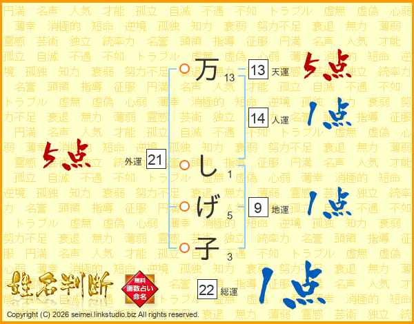 万しげ子さんの総運は22画の1点!