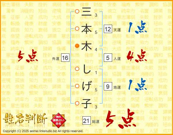 三(3画)本(5画)木(4画) し(1画)げ(5画)子(3画)