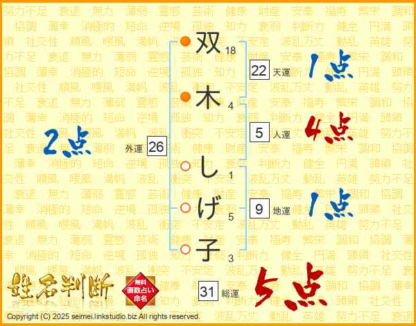 双木しげ子さんの総運は31画の5点!