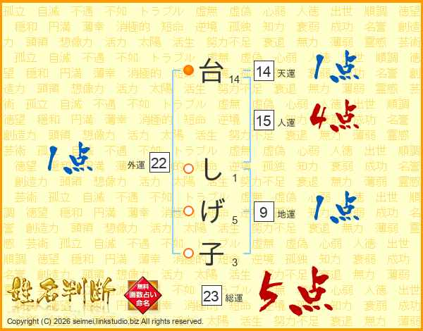 台しげ子さんの総運は23画の5点!
