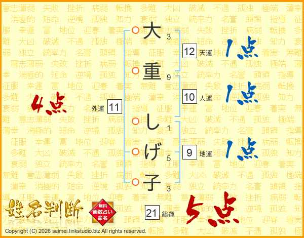 大(3画)重(9画) し(1画)げ(5画)子(3画)