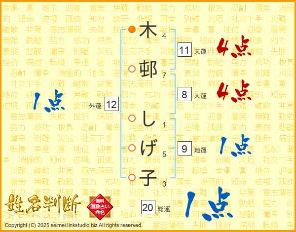 木邨しげ子さんの天運は11画の4点!
