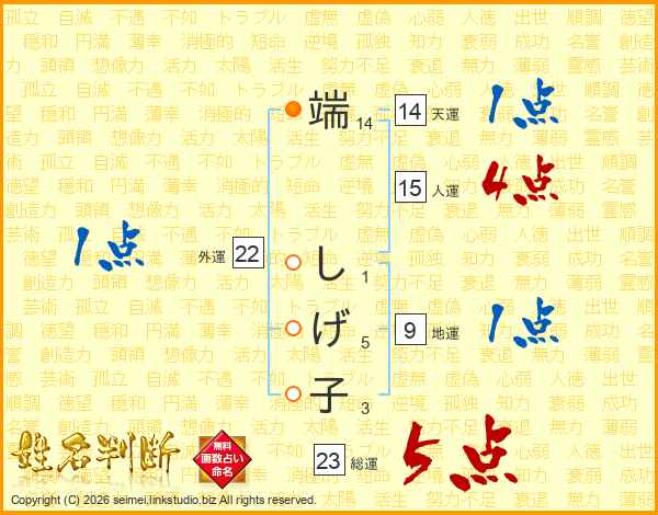 端しげ子さんの天運は14画の1点!