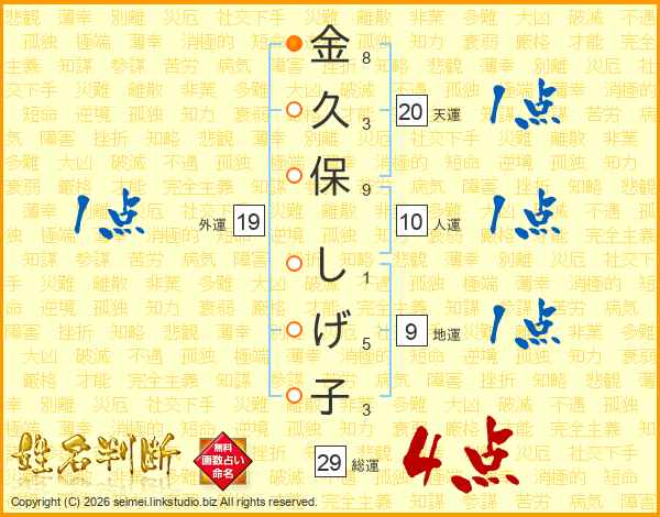 金久保しげ子さんの総運は29画の4点!