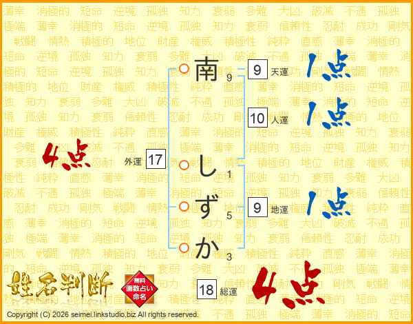 南しずかさんの総運は18画の4点!