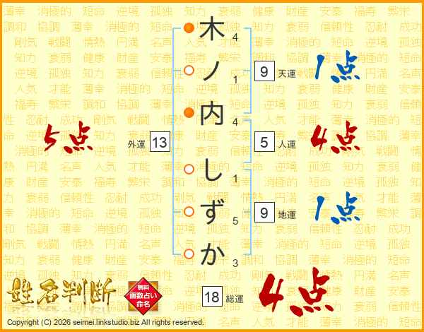 木ノ内しずかさんの総運は18画の4点!