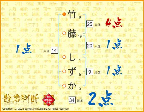 竹藤しずかさんの天運は25画の4点!