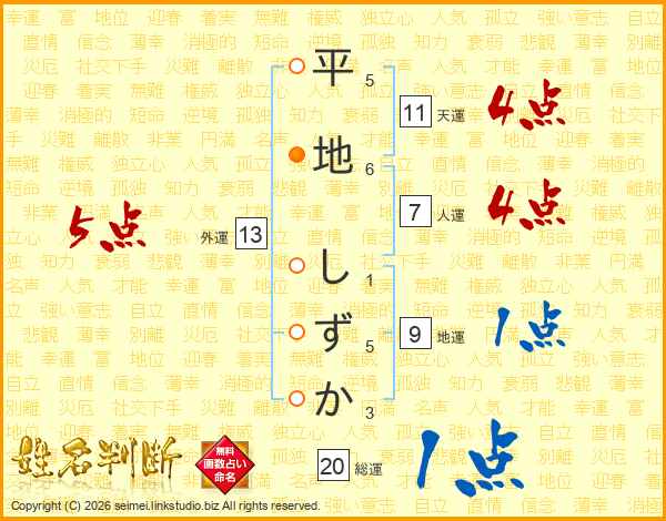 平地しずかさんの天運は11画の4点!