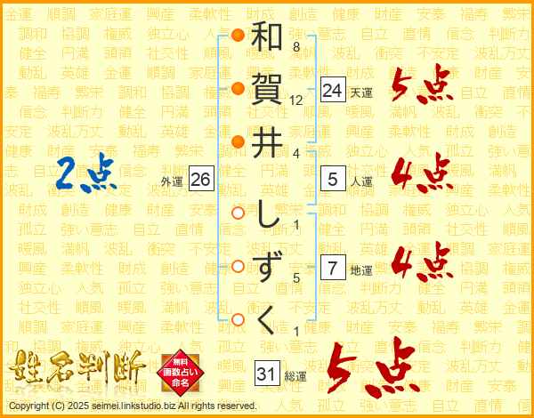 和賀井しずくさんの総運は31画の5点!