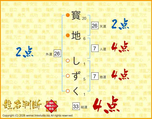 寳地しずくさんの総運は33画の4点!