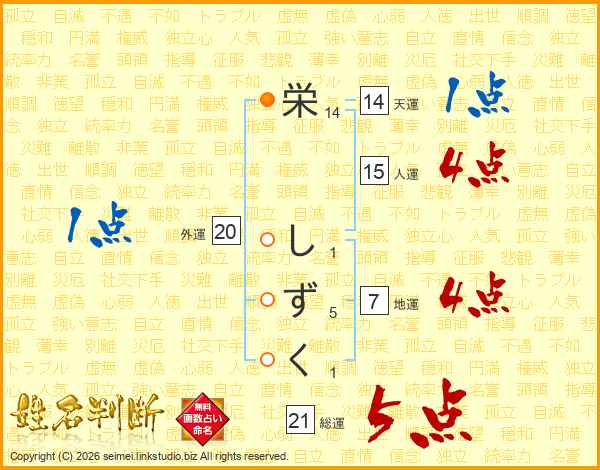 栄しずくさんの総運は21画の5点!