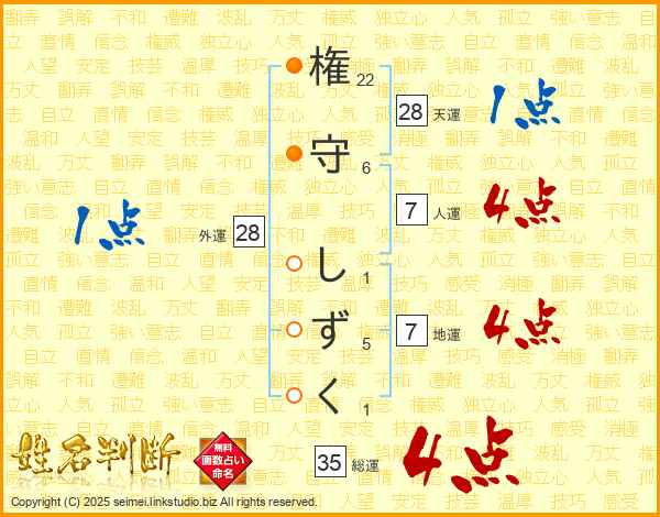 権(22画)守(6画) し(1画)ず(5画)く(1画)