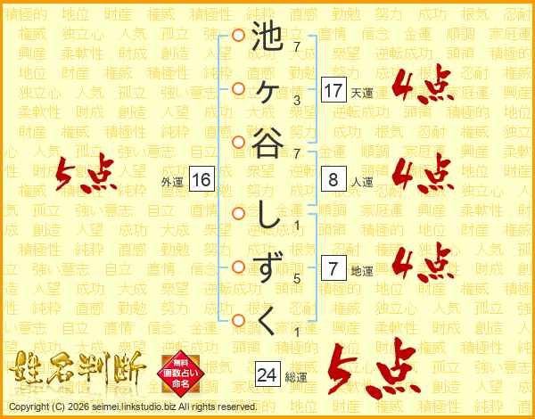 池ヶ谷しずくさんの天運は17画の4点!