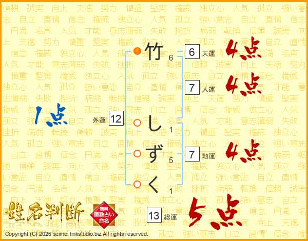 竹しずくさんの総運は13画の5点!