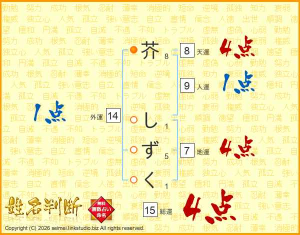 芥しずくさんの総運は15画の4点!