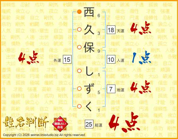 西久保しずくさんの地運は7画の4点!