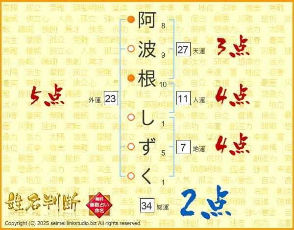 阿波根しずくさんの総運は34画の2点!
