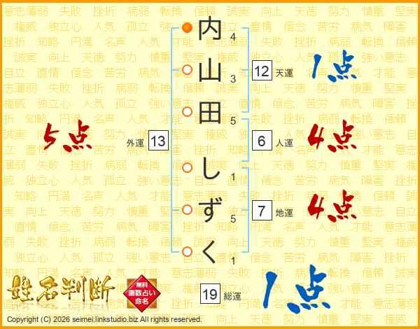 内山田しずくさんの地運は7画の4点!