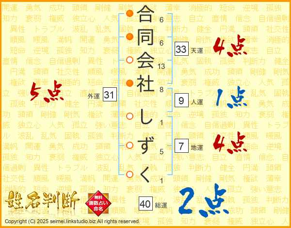 合同会社しずくさんの総運は40画の2点!