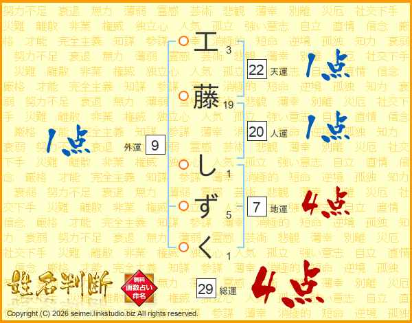 工藤しずくさんの総運は29画の4点!