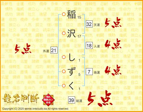 稲沢しずくさんの総運は39画の5点!