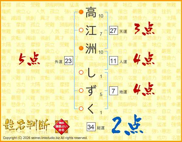 高江洲しずくさんの総運は34画の2点!