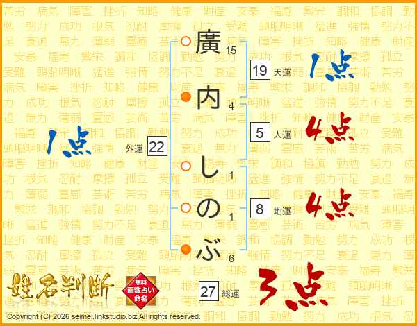 廣内しのぶさんの総運は27画の3点!
