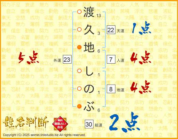 渡久地しのぶさんの総運は30画の2点!