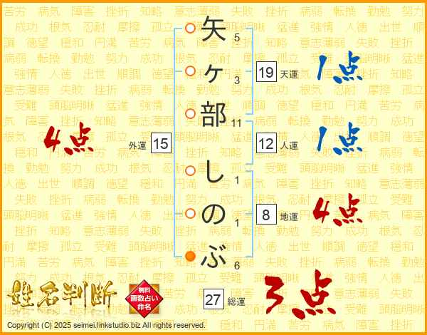 矢ヶ部しのぶさんの天運は19画の1点!
