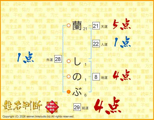 蘭(21画) し(1画)の(1画)ぶ(6画)