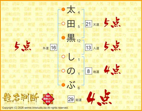 太田黒しのぶさんの総運は29画の4点!