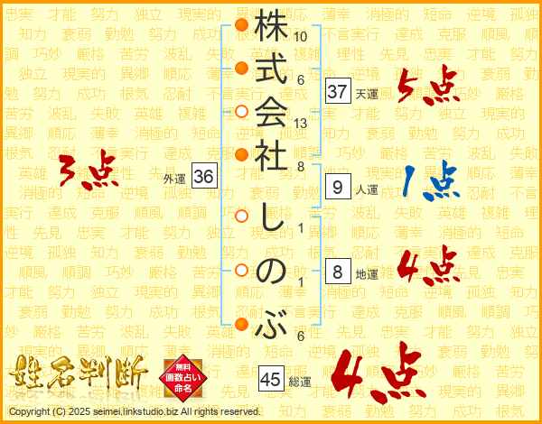 株式会社しのぶさんの天運は37画の5点!