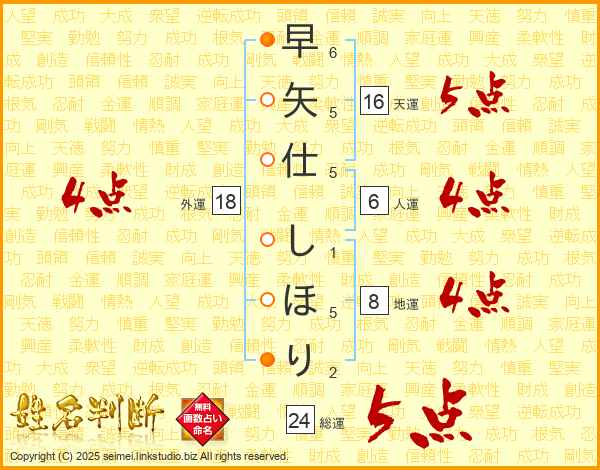 早矢仕しほりさんの総運は24画の5点!