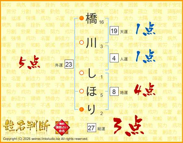 橋川しほりさんの外運は23画の5点!