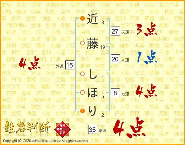 近藤しほりさんの天運は27画の3点!