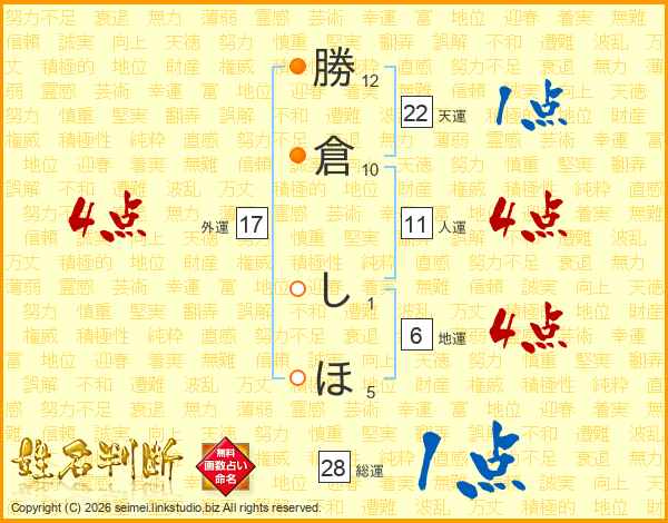 勝倉しほさんの総運は28画の1点!