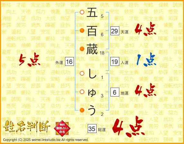 五百蔵しゅうさんの総運は35画の4点!