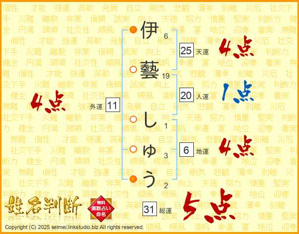 伊藝しゅうさんの総運は31画の5点!