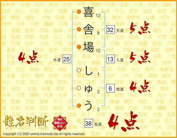 喜舎場しゅうさんの外運は25画の4点!
