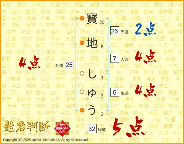 寳地しゅうさんの天運は26画の2点!