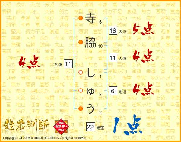 寺(6画)脇(10画) し(1画)ゅ(3画)う(2画)