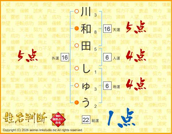 川和田しゅうさんの総運は22画の1点!