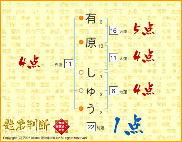 有原しゅうさんの総運は22画の1点!