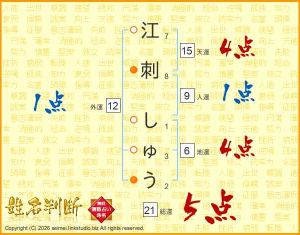 江刺しゅうさんの総運は21画の5点!