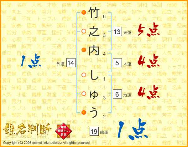 竹之内しゅうさんの天運は13画の5点!