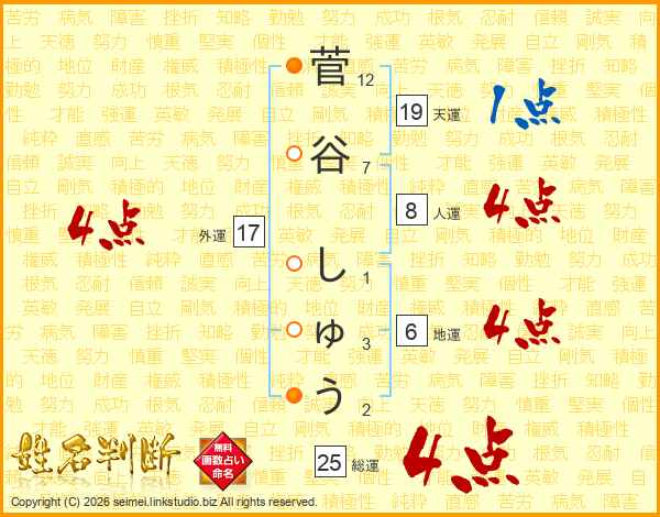 菅谷しゅうさんの総運は25画の4点!