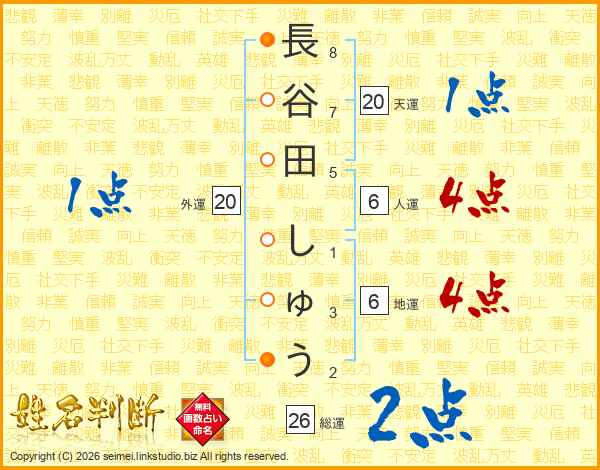 長谷田しゅうさんの総運は26画の2点!