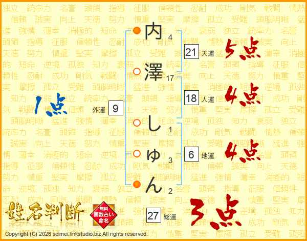 内澤しゅんさんの総運は27画の3点!